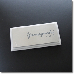 アルミ表札表札タイプ:eh-121 材質: アルミ・ガラス 寸法: 200mmx200mm 仕上: 2種類 シルバー・ブラック 文字: エッチング彫りこみ加工 納期: デザイン決定後 3週間