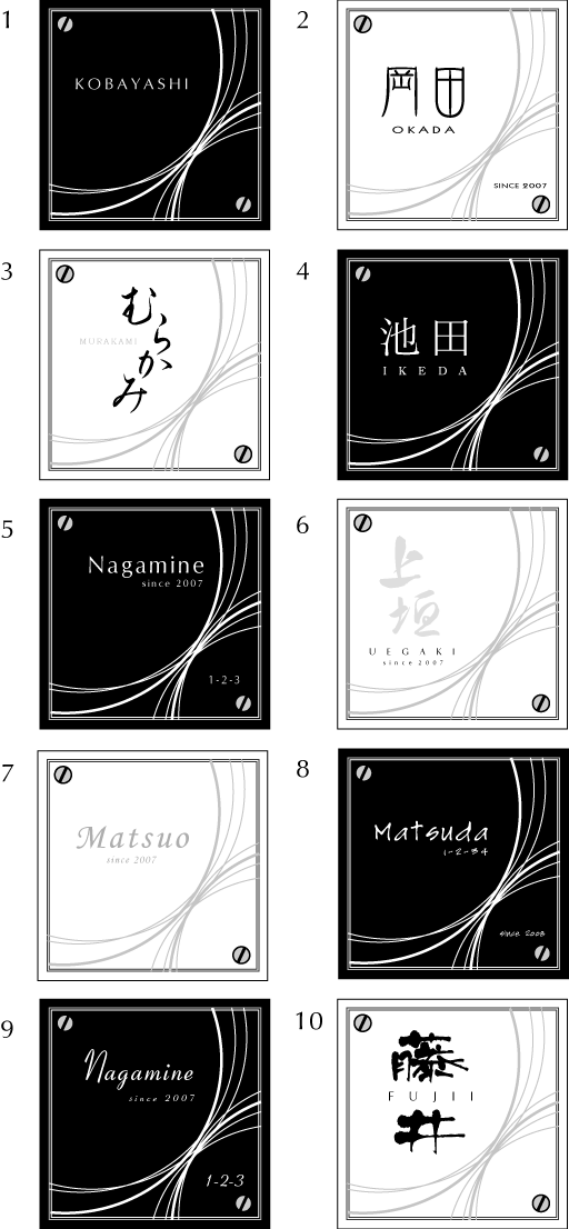 ガラス表札eh−117のデザインサンプルが10タイプご確認頂けます。